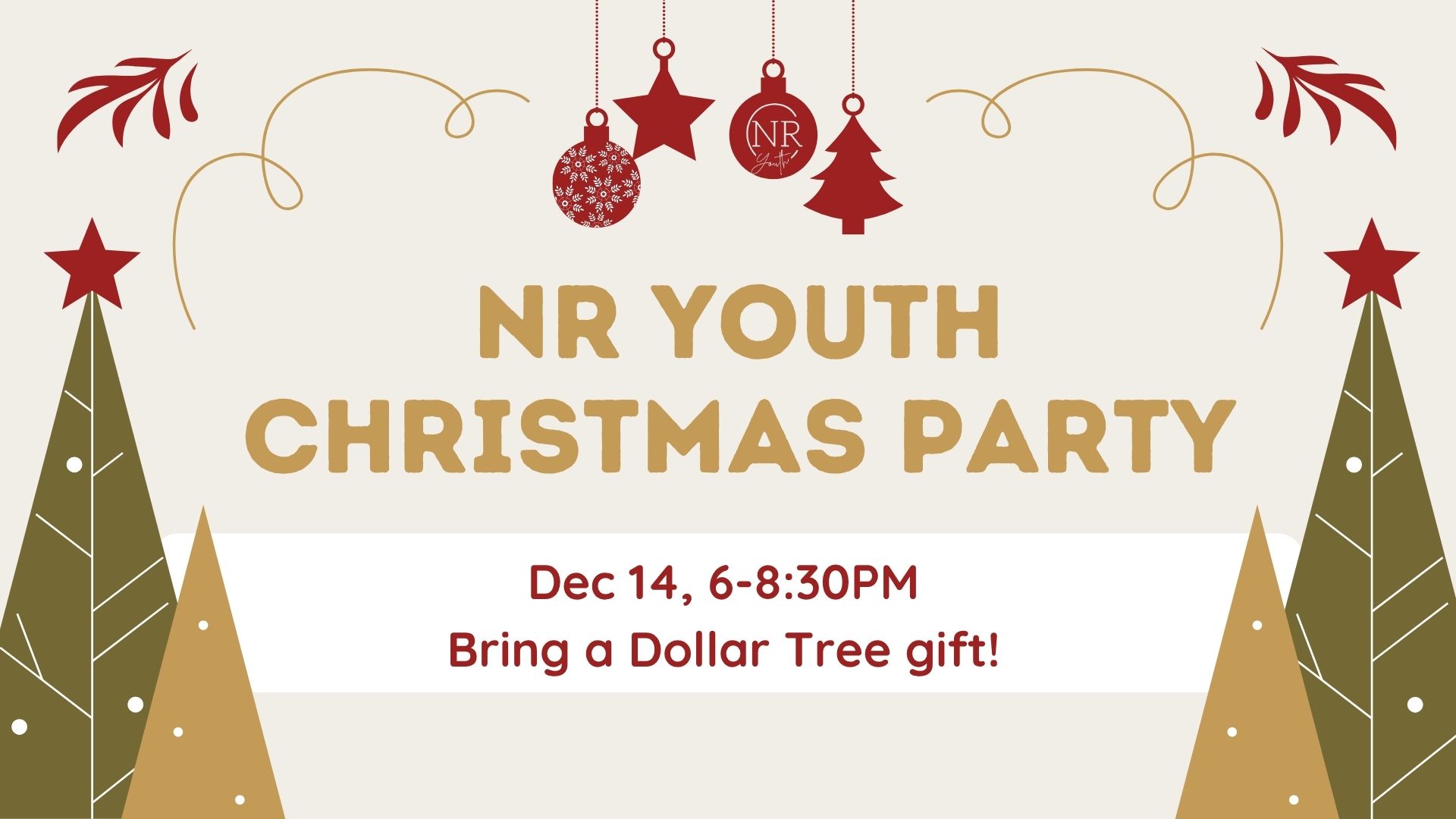 Join us for our annual NR Youth Christmas Party! Bring a Dollar Tree gift for Dirty Santa!
